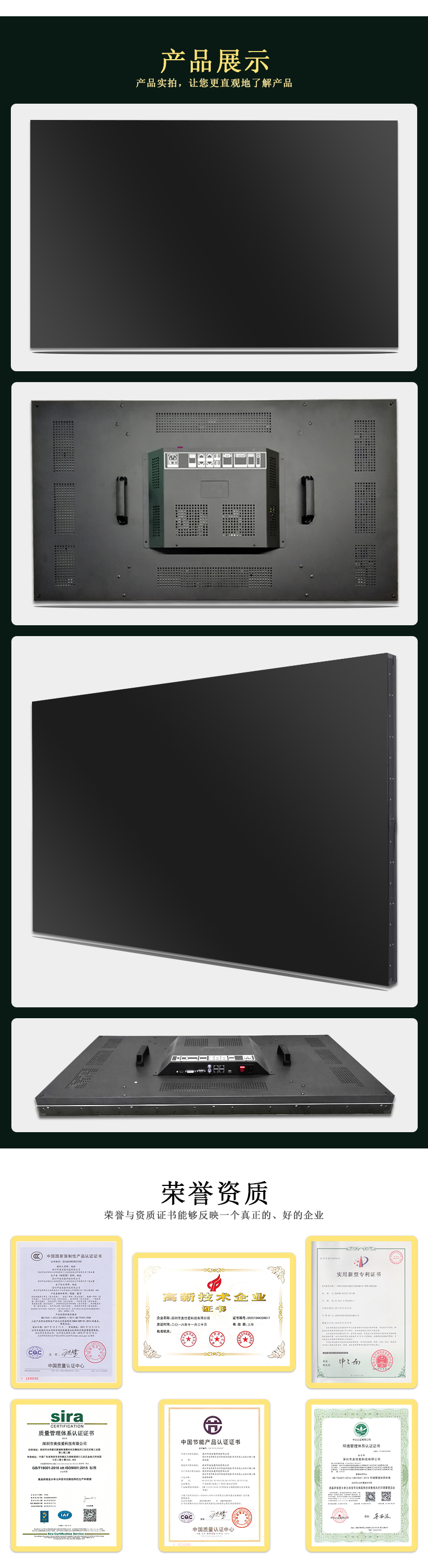 【美佳愛-4k液晶拼接屏生產廠家電話400-997-9971】原裝LG55寸液晶拼接屏0.88mm500cd產品通過ISO9001_3C_節(jié)能認證等30多項認證,主營LG/京東方/三星大屏幕電視墻,其尺寸有32寸40寸43寸46寸49寸55寸65寸75寸液晶拼接單元,也有曲面,弧形,柔性,無縫LED顯示屏,顯示器,超窄邊高清監(jiān)視器,提供企業(yè)展廳展示,KTV,酒吧,會議室,視頻監(jiān)控系統(tǒng)解決方案設計-報價-安裝施工-售后超窄邊維修等服務