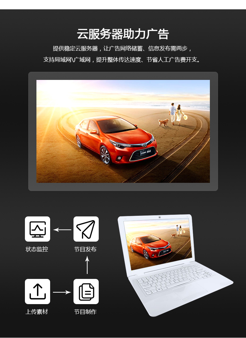 遠(yuǎn)程操作模式(需要多媒體軟件) | 遠(yuǎn)程自動(dòng)開關(guān)機(jī),遠(yuǎn)程更新編輯播放節(jié)目,遠(yuǎn)程監(jiān)控狀態(tài) |