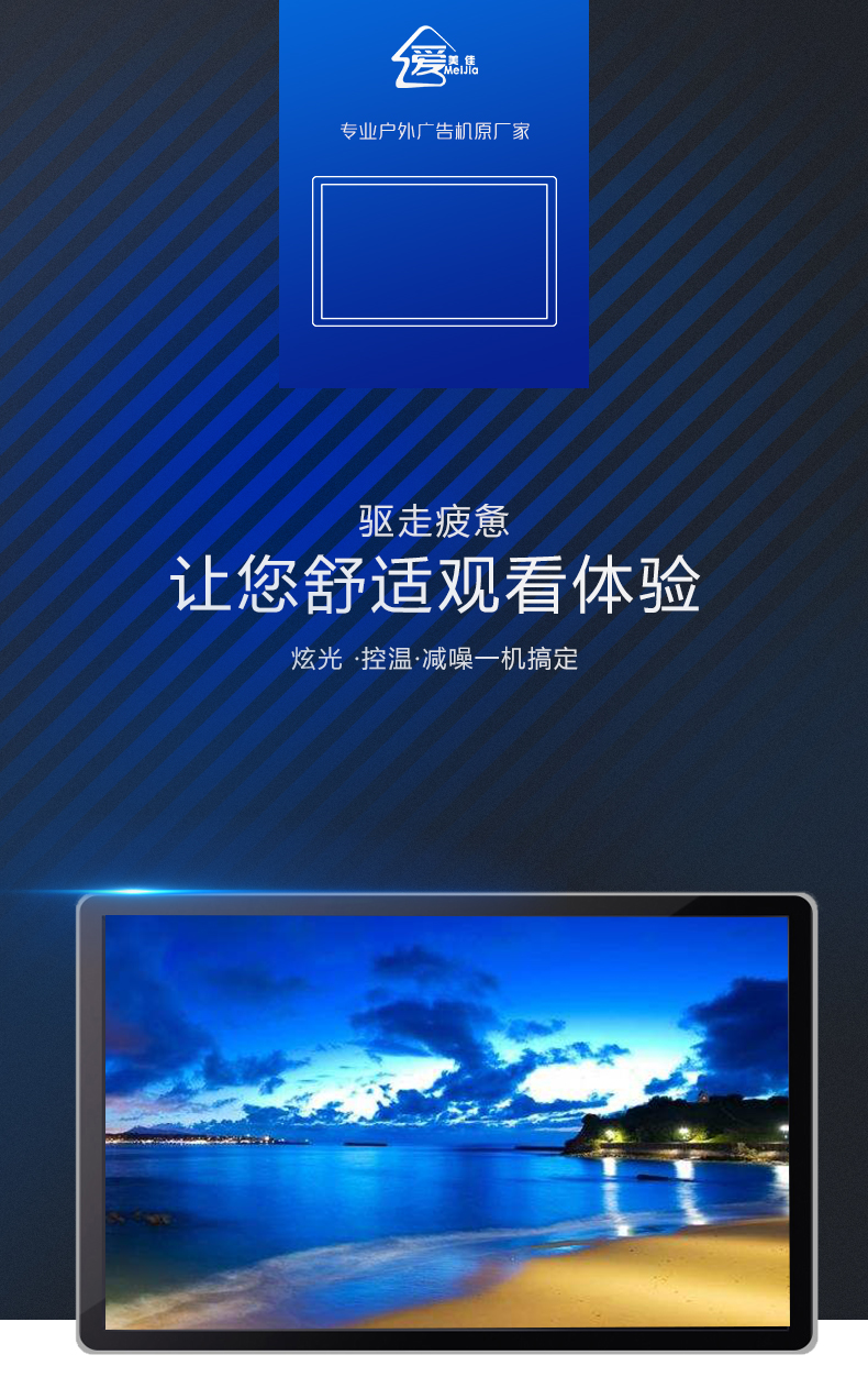 3.2 自主研發(fā)智能溫控系統(tǒng)控制盒,可以根據(jù)廣告機(jī)內(nèi)部溫度,智能調(diào)節(jié)整機(jī)內(nèi)部空氣和外部空氣進(jìn)行時(shí)時(shí)循環(huán),所有外界風(fēng)先進(jìn)入過(guò)濾網(wǎng),把風(fēng)分成屏前/后兩風(fēng)道循環(huán)。