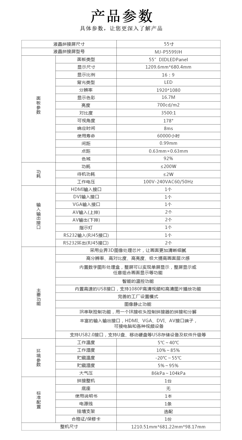 【美佳愛-4k液晶拼接屏生產(chǎn)廠家電話400-997-9971】京東方55寸液晶拼接屏-拼縫0.99mm-亮度700cd產(chǎn)品通過ISO9001_3C_節(jié)能認(rèn)證等30多項認(rèn)證,主營LG/京東方/三星大屏幕電視墻,其尺寸有32寸40寸43寸46寸49寸55寸65寸75寸液晶拼接單元,也有曲面,弧形,柔性,無縫LED顯示屏,顯示器,超窄邊高清監(jiān)視器,提供企業(yè)展廳展示,KTV,酒吧,會議室,視頻監(jiān)控系統(tǒng)解決方案設(shè)計-報價-安裝施工-售后超窄邊維修等服務(wù)
