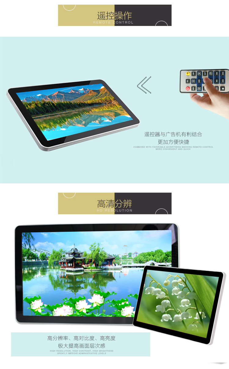 - 安裝方式:壁掛式,可橫屏安裝也可豎屏安裝