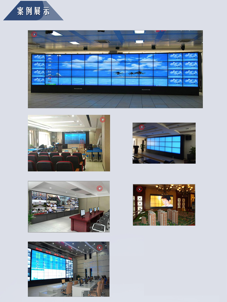 5.可拼接(選配),兼容了拼接處理器功能,支持普通電視、液晶顯示器及DLP等實現(xiàn)大屏幕拼接功能;